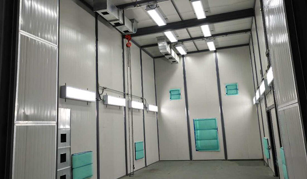 設(shè)備由室體、噴漆系統(tǒng)、漆霧過濾系統(tǒng)、加熱系統(tǒng)、廢氣處理系統(tǒng)、送排風(fēng)系統(tǒng)、電氣控制系統(tǒng)等組成。噴烘一體房具有噴漆和烘干兩種功能